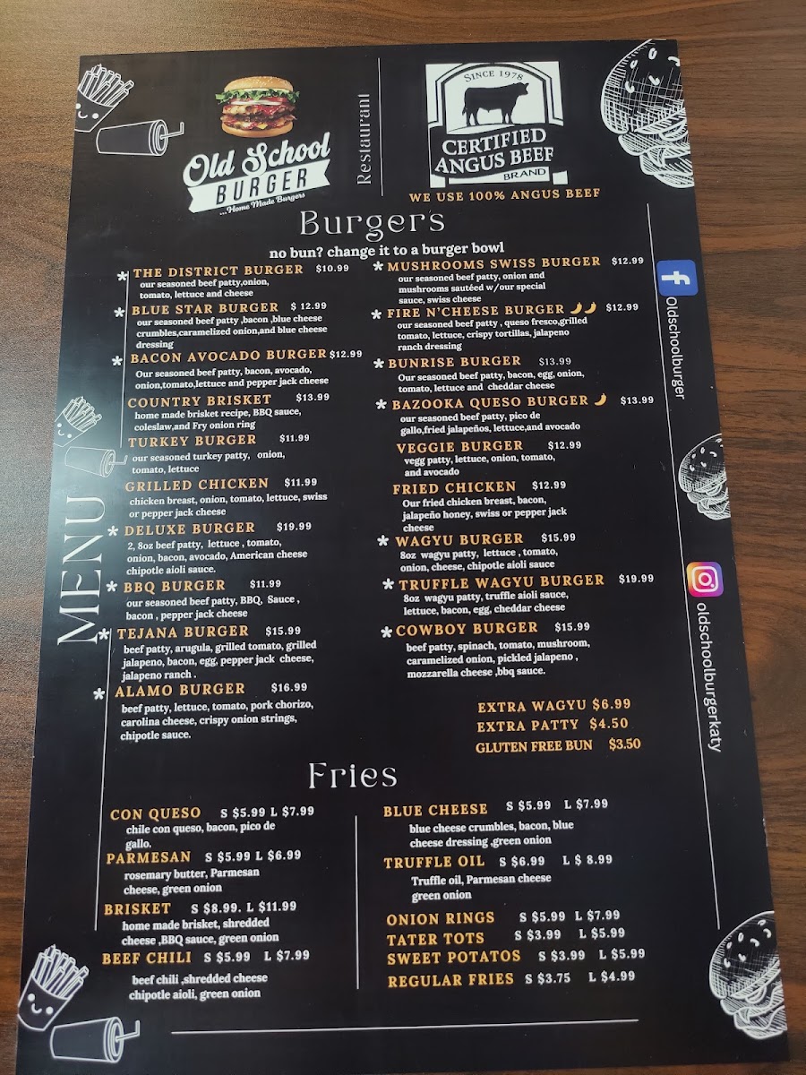 Welcome to Old School Burger, a cozy haven located at 975 S Mason Rd in Katy, Texas, where nostalgia meets culinary excellence. This charming burger joint offers a menu brimming with classic, mouthwatering burgers that transport you to simpler times. Each burger is crafted with quality ingredients; standout options include the Avocado Bacon Burger and the flavour-packed Blue Star Burger.